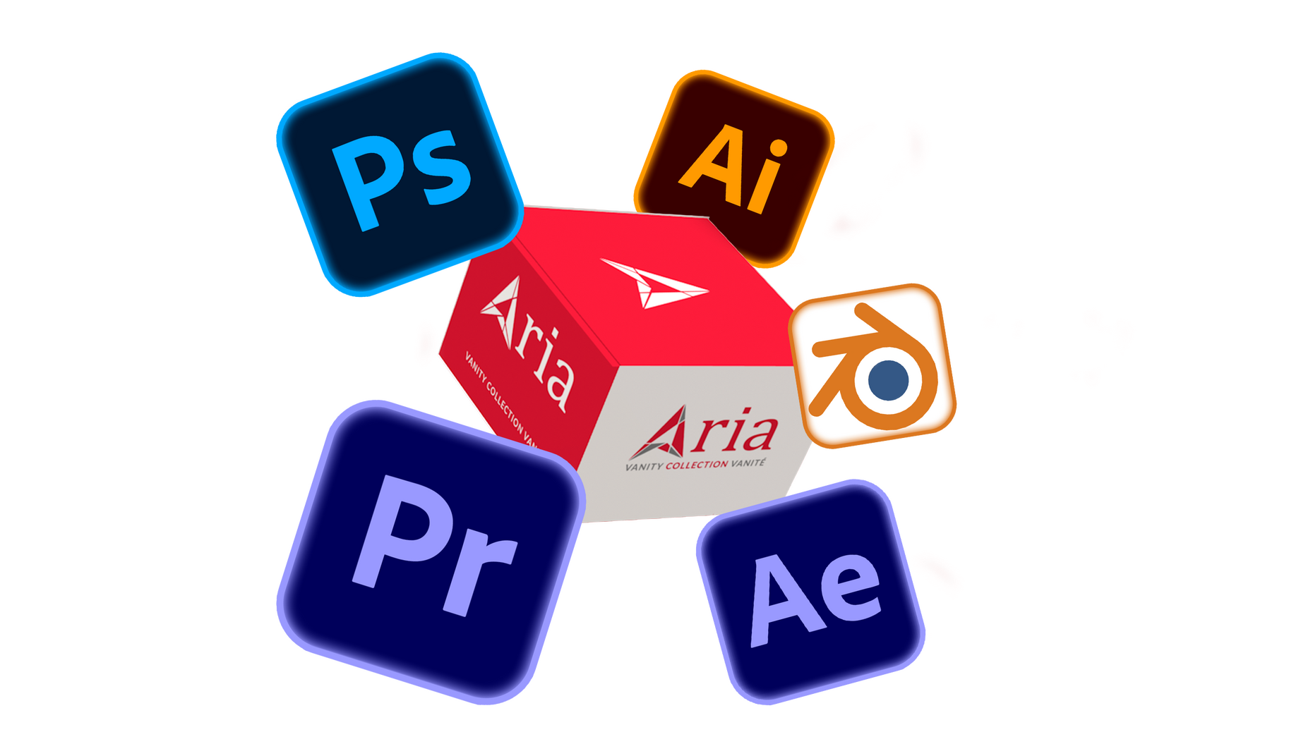 Assets were created in Photoshop, prepared for print in Illustrator, 3D modelled in Blender, video edited in Premiere Pro, VFX composited in After Effects.